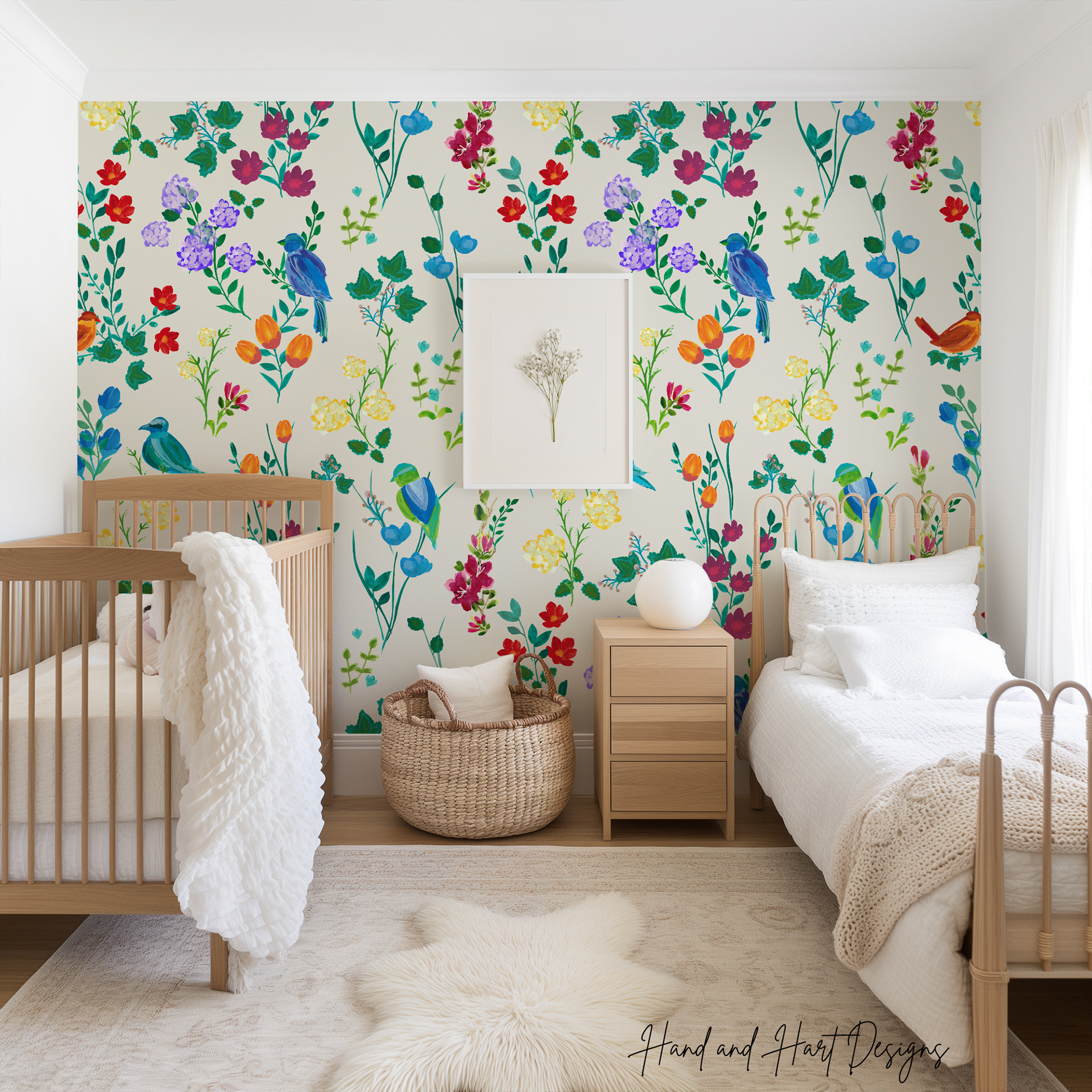 Colorful Birds shown on Cream Wallpaper