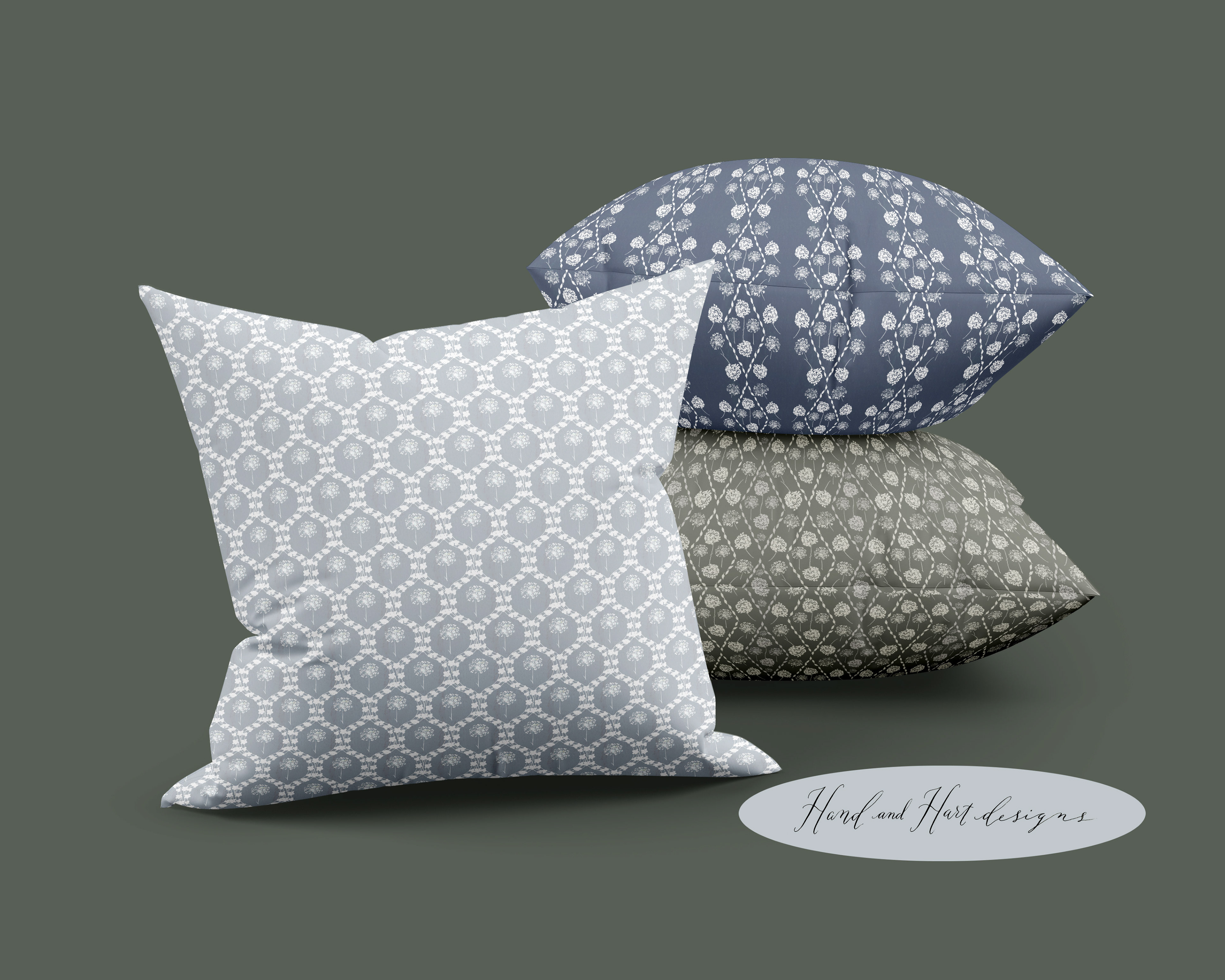 Hand painted florals bring an artistic touch to my designs. I love pattern and especially enjoy creating for home interiors.