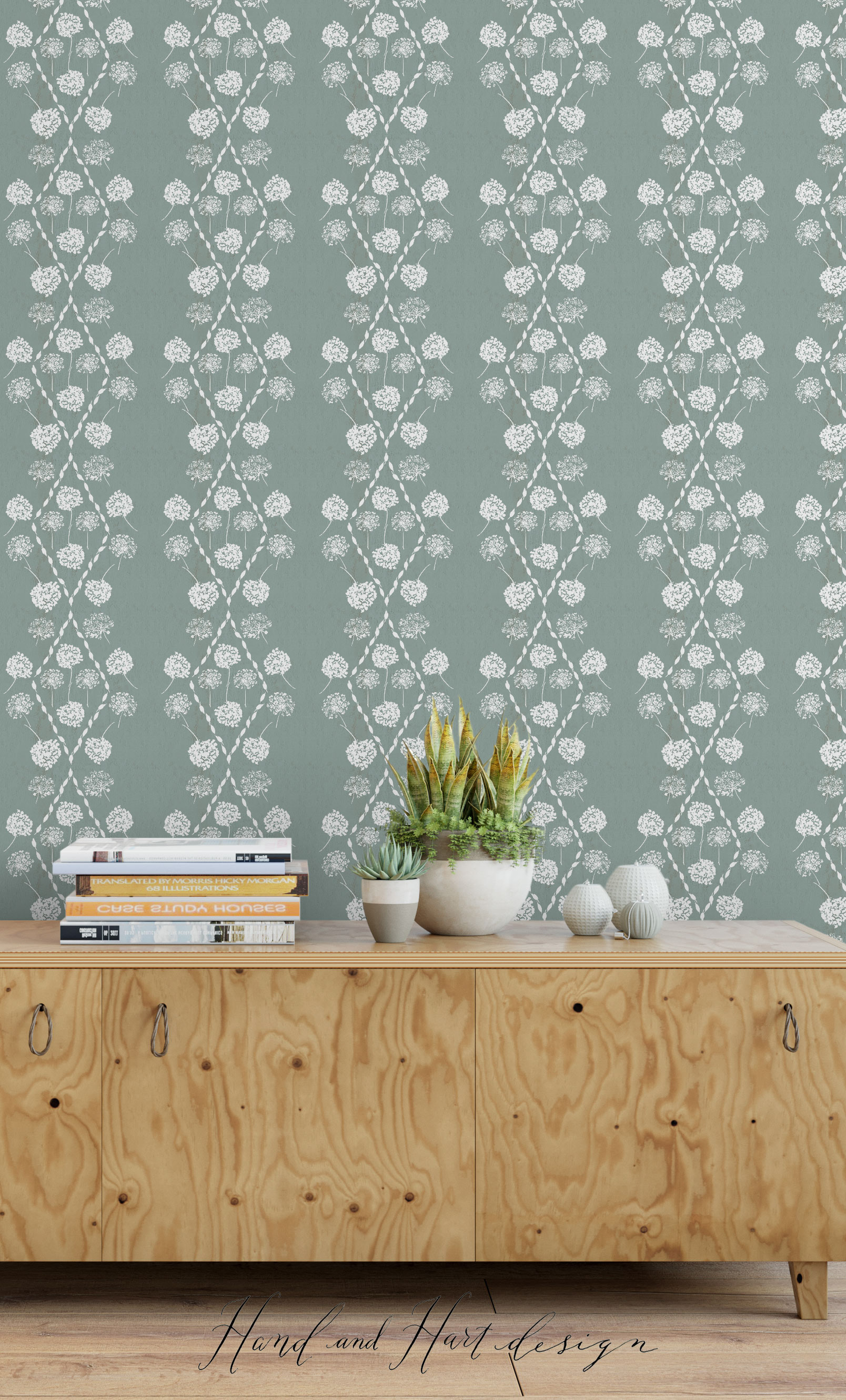 This collection includes soft and muted colors in a timeless design. Ogee patterns and soft pom florals in allover repeats and stripes. Wallpaper, fabrics, and soft home goods.